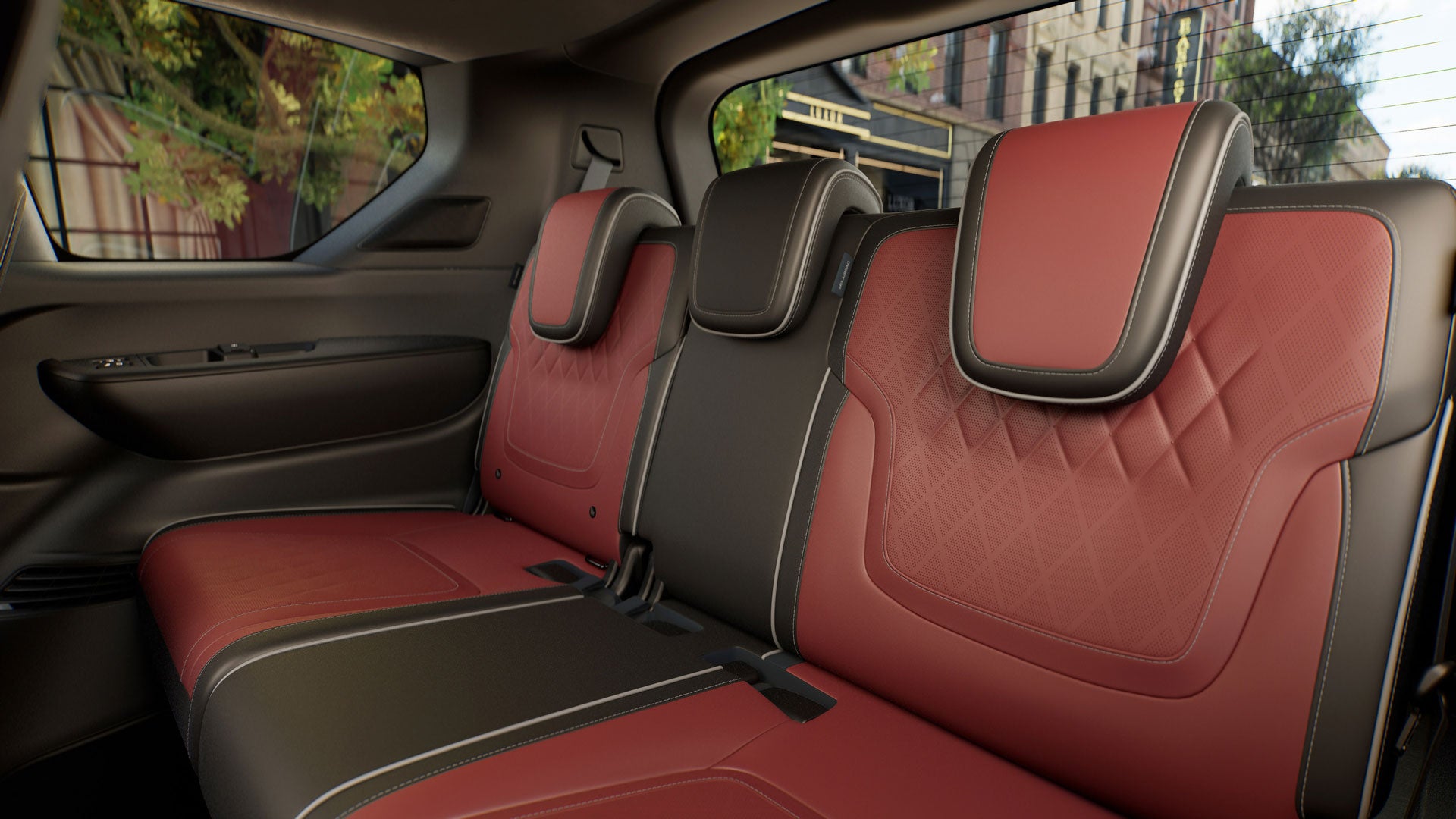 • Quilted semi-aniline leather-appointed seating across all three rows.