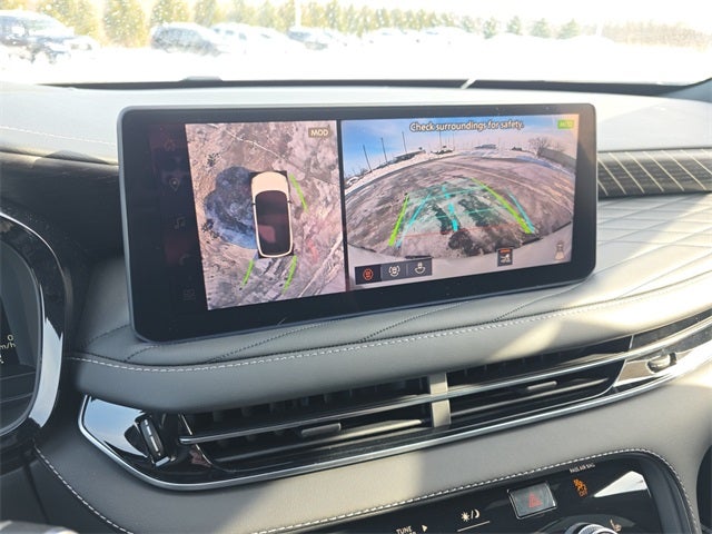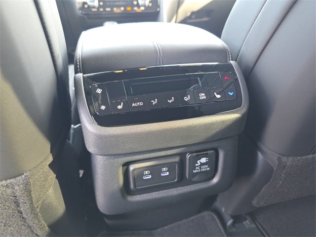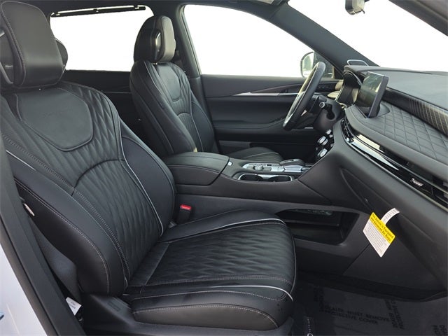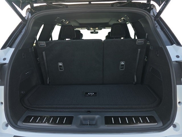 Dark Cargo Package (Black Rear Bumper Film, Cargo Blocks, Cargo Mat, Cargo Net, and Medic Kit), 2-Tone Super Premium Paint, 20 Speakers, 3rd row seats: bench, 4-Wheel Disc Brakes, ABS brakes, Air Conditioning, Alloy wheels, AM/FM radio: SiriusXM with 360L, Anti-whiplash front head restraints, Apple CarPlay/Android Auto, Auto High-beam Headlights, Auto tilt-away steering wheel, Auto-dimming door mirrors, Auto-dimming Rear-View mirror, Automatic temperature control, Black Roof Rail Crossbars, Bose Performance Series 17-Speaker Sound System, Brake assist, Bumpers: body-color, Carpeted Floor Mats with Captains Chairs on 3rd Row Tray, Climate Controlled Massaging Front Bucket Seats, Dark Illuminated Kick Plates, Delay-off headlights, Driver door bin, Driver vanity mirror, Dual front impact airbags, Dual front side impact airbags, Electronic Stability Control, Emergency communication system: INFINITI InTouch, Four wheel independent suspension, Front anti-roll bar, Front Bucket Seats, Front Center Armrest, Front dual zone A/C, Front reading lights, Fully automatic headlights, Garage door transmitter: HomeLink, Genuine wood door panel insert, Heads-Up Display, Heated door mirrors, Heated front seats, Heated rear seats, Heated steering wheel, Illuminated entry, INFINITI Radiant Dark Illuminated Cargo Scuff Plates, Knee airbag, Leather Shift Knob, Leather steering wheel, Literature Kit, Low tire pressure warning, Memory seat, Navigation system: Google Built-in, Occupant sensing airbag, Outside temperature display, Overhead airbag, Overhead console, Panic alarm, Passenger door bin, Passenger vanity mirror, Power door mirrors, Power driver seat, Power Liftgate, Power moonroof: Panoramic, Power passenger seat, Power steering, Power windows, Radio data system, Radio: Klipsch Premiere Audio System, Rain sensing wipers, Rear air conditioning, Rear anti-roll bar, Rear reading lights, Rear side impact airbag, Rear window defroster, Rear window wiper, Reclining 3rd row seat, Remote keyless entry, Security system, Semi Aniline Leather-Appointed Seating Surfaces, Speed control, Speed-sensing steering, Speed-Sensitive Wipers, Splash Guards, Split folding rear seat, Spoiler, Steering wheel memory, Steering wheel mounted audio controls, Tachometer, Telescoping steering wheel, Tilt steering wheel, Traction control, Trip computer, Turn signal indicator mirrors, Variably intermittent wipers, Ventilated front seats, and Wheels: 20 x 8J Luxury Machined Aluminum Alloy.