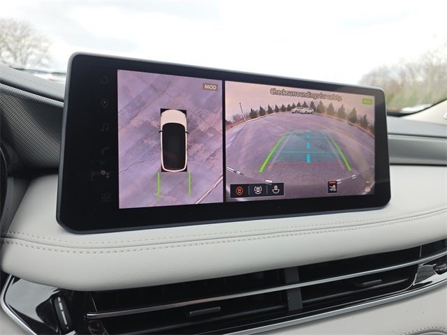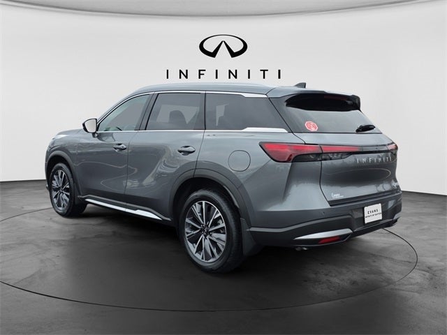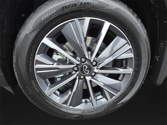 Cargo Package (Clear Rear Bumper Film), 17 Speakers, 3rd row seats: bench, 4-Wheel Disc Brakes, ABS brakes, Air Conditioning, Alloy wheels, AM/FM radio: SiriusXM with 360L, Anti-whiplash front head restraints, Apple CarPlay/Android Auto, Auto High-beam Headlights, Auto tilt-away steering wheel, Auto-dimming door mirrors, Auto-dimming Rear-View mirror, Automatic temperature control, Bose Performance Series 17-Speaker Sound System, Brake assist, Bumpers: body-color, Carpeted Floor Mats with Bench Seats on 3rd Row Tray, Climate Controlled Front Bucket Seats, Delay-off headlights, Driver door bin, Driver vanity mirror, Dual front impact airbags, Dual front side impact airbags, Electronic Stability Control, Emergency communication system: INFINITI InTouch, Four wheel independent suspension, Front anti-roll bar, Front Bucket Seats, Front Center Armrest, Front dual zone A/C, Front reading lights, Fully automatic headlights, Garage door transmitter: HomeLink, Heated door mirrors, Heated front seats, Heated rear seats, Heated steering wheel, Illuminated entry, Knee airbag, Leather Shift Knob, Leather steering wheel, Literature Kit, Low tire pressure warning, Memory seat, Navigation system: Google Built-in, Occupant sensing airbag, Outside temperature display, Overhead airbag, Overhead console, Panic alarm, Passenger door bin, Passenger vanity mirror, Power door mirrors, Power driver seat, Power Liftgate, Power moonroof: Panoramic, Power passenger seat, Power steering, Power windows, Radio data system, Radio: Klipsch Premium Audio System, Rain sensing wipers, Rear air conditioning, Rear anti-roll bar, Rear reading lights, Rear seat center armrest, Rear side impact airbag, Rear window defroster, Rear window wiper, Reclining 3rd row seat, Remote keyless entry, Security system, Speed control, Speed-sensing steering, Speed-Sensitive Wipers, Splash Guards, Split folding rear seat, Spoiler, Steering wheel memory, Steering wheel mounted audio controls, Tachometer, Tailorfit-Appointed Seating Surfaces, Telescoping steering wheel, Tilt steering wheel, Traction control, Trip computer, Turn signal indicator mirrors, Variably intermittent wipers, Ventilated front seats, and Wheels: 20 x 8J Machined Aluminum Alloy.
