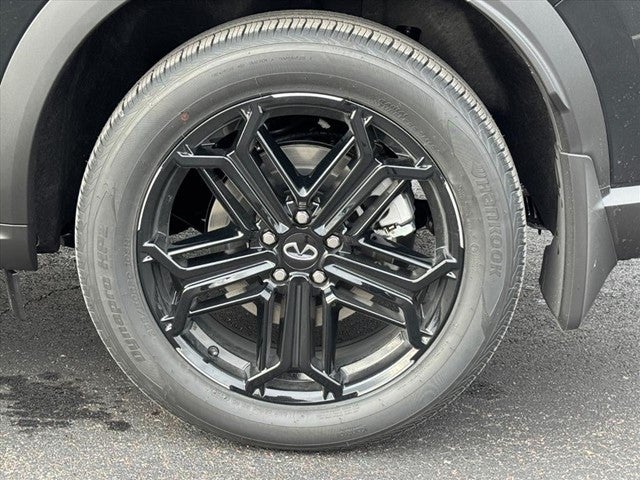Dark Cargo Package (Black Rear Bumper Film, Cargo Blocks, and Cargo Mat), 17 Speakers, 3rd row seats: bench, 4-Wheel Disc Brakes, ABS brakes, Air Conditioning, Alloy wheels, AM/FM radio: SiriusXM with 360L, Anti-whiplash front head restraints, Apple CarPlay/Android Auto, Auto High-beam Headlights, Auto tilt-away steering wheel, Auto-dimming door mirrors, Auto-dimming Rear-View mirror, Automatic temperature control, Black Roof Rail Crossbars, Bose Performance Series 17-Speaker Sound System, Brake assist, Bumpers: body-color, Carpeted Floor Mats with Captains Chairs on 3rd Row Tray, Climate Controlled Front Bucket Seats, Delay-off headlights, Driver door bin, Driver vanity mirror, Dual front impact airbags, Dual front side impact airbags, Electronic Stability Control, Emergency communication system: INFINITI InTouch, Four wheel independent suspension, Front anti-roll bar, Front Bucket Seats, Front Center Armrest, Front dual zone A/C, Front reading lights, Fully automatic headlights, Garage door transmitter: HomeLink, Genuine wood door panel insert, Heated door mirrors, Heated front seats, Heated rear seats, Heated steering wheel, Illuminated entry, INFINITI Radiant Dark Illuminated Kick Plates, Knee airbag, Leather Shift Knob, Leather steering wheel, Literature Kit, Low tire pressure warning, Memory seat, Navigation system: Google Built-in, Occupant sensing airbag, Outside temperature display, Overhead airbag, Overhead console, Panic alarm, Passenger door bin, Passenger vanity mirror, Power door mirrors, Power driver seat, Power Liftgate, Power moonroof: Panoramic, Power passenger seat, Power steering, Power windows, Premium Paint, Radio data system, Radio: Klipsch Premium Audio System, Rain sensing wipers, Rear air conditioning, Rear anti-roll bar, Rear reading lights, Rear side impact airbag, Rear window defroster, Rear window wiper, Reclining 3rd row seat, Remote keyless entry, Security system, Speed control, Speed-sensing steering, Speed-Sensitive Wipers, Splash Guards, Split folding rear seat, Spoiler, Steering wheel memory, Steering wheel mounted audio controls, Tachometer, Tailorfit-Appointed Seating Surfaces, Telescoping steering wheel, Tilt steering wheel, Traction control, Trip computer, Turn signal indicator mirrors, Variably intermittent wipers, Ventilated front seats, and Wheels: 20 x 8J Unique Sporty Machined Aluminum Alloy.