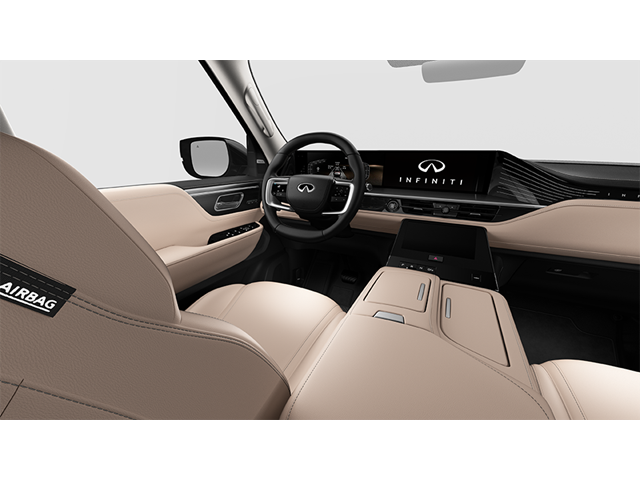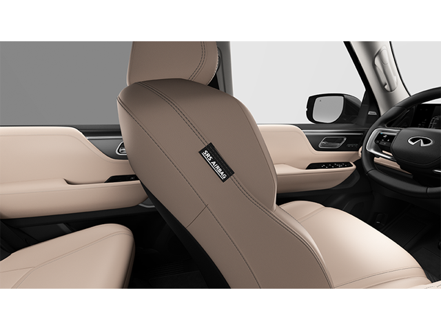 14 Speakers, 3rd row seats: bench, 4-Wheel Disc Brakes, ABS brakes, Air Conditioning, Alloy wheels, AM/FM radio: SiriusXM with 360L, Anti-whiplash front head restraints, Apple CarPlay/Android Auto, Audio memory, Auto High-beam Headlights, Auto tilt-away steering wheel, Auto-dimming door mirrors, Auto-dimming Rear-View mirror, Automatic temperature control, Brake assist, Bumpers: body-color, Compass, Delay-off headlights, Driver door bin, Driver vanity mirror, Dual front impact airbags, Dual front side impact airbags, Electronic Stability Control, Emergency communication system: INFINITI InTouch, Four wheel independent suspension, Front anti-roll bar, Front Bucket Seats, Front Center Armrest, Front dual zone A/C, Front reading lights, Fully automatic headlights, Garage door transmitter: myQ Connected Garage, Heated door mirrors, Heated Front Bucket Seats, Heated front seats, Heated rear seats, Heated steering wheel, HVAC memory, Illuminated entry, Knee airbag, Leather steering wheel, Low tire pressure warning, Memory seat, Navigation system: Google Built-in, Occupant sensing airbag, Outside temperature display, Overhead airbag, Overhead console, Panic alarm, Passenger door bin, Passenger vanity mirror, Power door mirrors, Power driver seat, Power Liftgate, Power moonroof, Power passenger seat, Power steering, Power windows, Radio data system, Radio: Klipsch Premium Audio System, Rain sensing wipers, Rear air conditioning, Rear anti-roll bar, Rear reading lights, Rear seat center armrest, Rear window defroster, Rear window wiper, Reclining 3rd row seat, Remote keyless entry, Security system, Speed control, Speed-sensing steering, Split folding rear seat, Spoiler, Steering wheel memory, Steering wheel mounted audio controls, Super Premium Paint, Tachometer, Tailorfit-Appointed Seating Surfaces, Telescoping steering wheel, Tilt steering wheel, Traction control, Trip computer, Turn signal indicator mirrors, Variably intermittent wipers, and Wheels: 20 x 8.5J Aluminum Alloy.