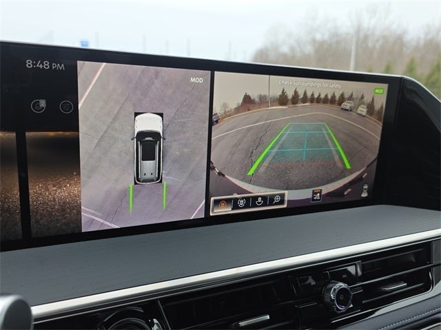 Sport Exterior Package (Black Roof Rail Crossbars and Dark Chrome Rear Bumper Protector), 3rd row seats: bench, 4-Wheel Disc Brakes, ABS brakes, Adaptive suspension, Air Conditioning, Alloy wheels, AM/FM radio: SiriusXM with 360L, Anti-whiplash front head restraints, Apple CarPlay/Android Auto, Audio memory, Auto High-beam Headlights, Auto tilt-away steering wheel, Auto-dimming door mirrors, Auto-dimming Rear-View mirror, Auto-leveling suspension, Automatic temperature control, Brake assist, Compass, Delay-off headlights, Driver door bin, Driver vanity mirror, Dual front impact airbags, Dual front side impact airbags, Electronic Stability Control, Emergency communication system: INFINITI InTouch, Four wheel independent suspension, Front anti-roll bar, Front Bucket Seats, Front Center Armrest, Front dual zone A/C, Front reading lights, Fully automatic headlights, Garage door transmitter: HomeLink, Genuine wood dashboard insert, Genuine wood door panel insert, Heads-Up Display, Heated and Climate Controlled Front Bucket Seats with Massage, Heated door mirrors, Heated front seats, Heated rear seats, Heated steering wheel, HVAC memory, Illuminated entry, Knee airbag, Leather steering wheel, Low tire pressure warning, Memory seat, Navigation system: Google Built-in, Occupant sensing airbag, Outside temperature display, Overhead airbag, Overhead console, Panic alarm, Passenger door bin, Passenger vanity mirror, Power door mirrors, Power driver seat, Power Liftgate, Power moonroof, Power passenger seat, Power steering, Power windows, Radio data system, Radio: Klipsch Premiere Audio System, Rain sensing wipers, Rear air conditioning, Rear anti-roll bar, Rear reading lights, Rear seat center armrest, Rear window defroster, Rear window wiper, Reclining 3rd row seat, Remote keyless entry, Security system, Speed control, Speed-sensing steering, Splash Guards, Split folding rear seat, Spoiler, Steering wheel memory, Steering wheel mounted audio controls, Tachometer, Telescoping steering wheel, Tilt steering wheel, Traction control, Trip computer, Turn signal indicator mirrors, Two-Tone Premium Paint, Unique SPORT Semi-Aniline Leather Seating Surfaces, Variably intermittent wipers, Ventilated front seats, Ventilated rear seats, and Wheels: 22 x 8.5J Unique SPORT Alloy.