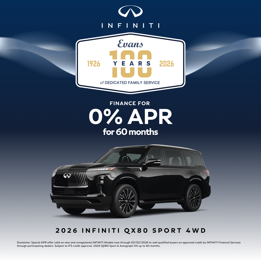 Special APR offer valid on new and unregistered INFINITI Models now through 03/02/2026 to well qualified buyers on approved credit by INFINITI Financial Services through participating dealers. Subject to IFS credit approval. 2026 QX80 Sport 0% up to 60 months.