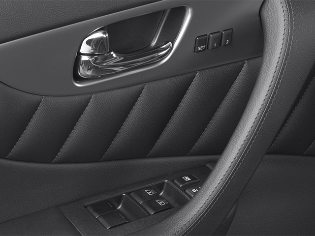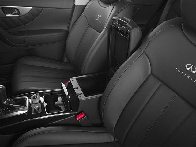 Premium Package (Aluminum Roof Rails, Around View Monitor w/Front & Rear Sonar System, Dual Occupant Memory System, Entry & Exit Assist System, INFINITI Hard Drive Navigation System, Outside Mirrors w/Reverse Tilt-Down Feature, and Power Tilt/Telescopic Steering Column), 11 Speakers, 18 5-Spoke Aluminum Alloy Wheels, 3.692 Axle Ratio, 4-Wheel Disc Brakes, ABS brakes, Air Conditioning, Alloy wheels, AM/FM radio: SiriusXM, Anti-whiplash front head restraints, Auto-dimming Rear-View mirror, Automatic temperature control, Block heater, Bodyside moldings, Brake assist, Bumpers: body-color, CD player, Compass, Delay-off headlights, Driver door bin, Driver vanity mirror, Dual front impact airbags, Dual front side impact airbags, Electronic Stability Control, Exterior Parking Camera Rear, First Aid Kit & Cargo Net, Four wheel independent suspension, Front anti-roll bar, Front Bucket Seats, Front Center Armrest w/Storage, Front dual zone A/C, Front fog lights, Front reading lights, Fully automatic headlights, Garage door transmitter: HomeLink, Heated door mirrors, Heated Front Bucket Seats, Heated front seats, High intensity discharge headlights: Bi-Xenon, Illuminated entry, Leather Shift Knob, Leather steering wheel, Leather-Appointed Seat Trim, Low tire pressure warning, Occupant sensing airbag, Outside temperature display, Overhead airbag, Overhead console, Panic alarm, Passenger door bin, Passenger vanity mirror, Power door mirrors, Power driver seat, Power Liftgate, Power moonroof, Power passenger seat, Power steering, Power windows, Radio data system, Radio: Bose Premium AM/FM/Single In-Dash CD/MP3, Rear anti-roll bar, Rear reading lights, Rear seat center armrest, Rear window defroster, Rear window wiper, Remote keyless entry, Security system, Speed control, Speed-sensing steering, Speed-Sensitive Wipers, Split folding rear seat, Spoiler, Stainless Steel Rear Bumper Protector, Steering wheel mounted audio controls, Tachometer, Telescoping steering wheel, Tilt steering wheel, Traction control, Trip computer, Turn signal indicator mirrors, and Variably intermittent wipers.