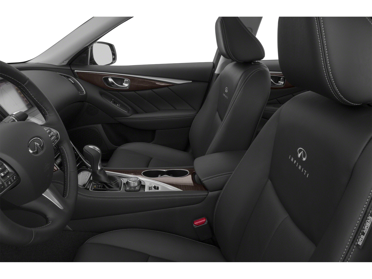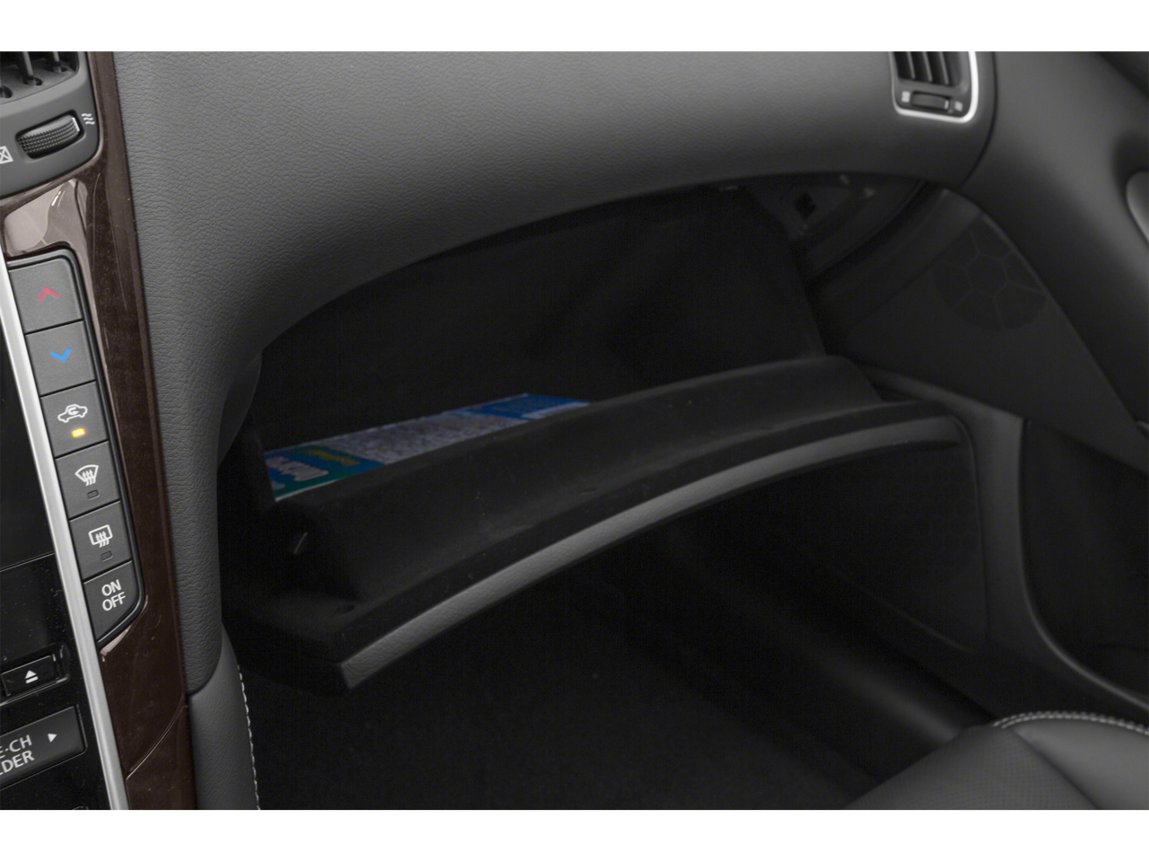 14 Speakers, 4-Wheel Disc Brakes, ABS brakes, Air Conditioning, Alloy wheels, AM/FM radio: SiriusXM, Anti-whiplash front head restraints, Auto-dimming Rear-View mirror, Automatic temperature control, BOSE Centerpoint Simulated Surround, Brake assist, Bumpers: body-color, CD player, Compass, Delay-off headlights, Driver door bin, Driver vanity mirror, Dual front impact airbags, Dual front side impact airbags, Electronic Stability Control, Four wheel independent suspension, Front anti-roll bar, Front Bucket Seats, Front Center Armrest, Front dual zone A/C, Front fog lights, Front reading lights, Fully automatic headlights, Garage door transmitter: HomeLink, Heated door mirrors, Heated front seats, Heated Sport Front Seats, Heated steering wheel, Illuminated entry, INFINITI Studio on Wheels by Bose, Leather Shift Knob, Leather steering wheel, Leather-Appointed Seats, Low tire pressure warning, Occupant sensing airbag, Outside temperature display, Overhead airbag, Overhead console, Panic alarm, Passenger door bin, Passenger vanity mirror, Power door mirrors, Power driver seat, Power moonroof, Power passenger seat, Power steering, Power windows, Radio data system, Radio: AM/FM/CD w/MP3 Playback Capability, Rear anti-roll bar, Rear reading lights, Rear seat center armrest, Rear window defroster, Remote keyless entry, Security system, Speed control, Speed-sensing steering, Speed-Sensitive Wipers, Sport steering wheel, Steering wheel mounted audio controls, Tachometer, Telescoping steering wheel, Tilt steering wheel, Traction control, Trip computer, Turn signal indicator mirrors, Variably intermittent wipers, and Wheels: 19 Aluminum-Alloy Sport.