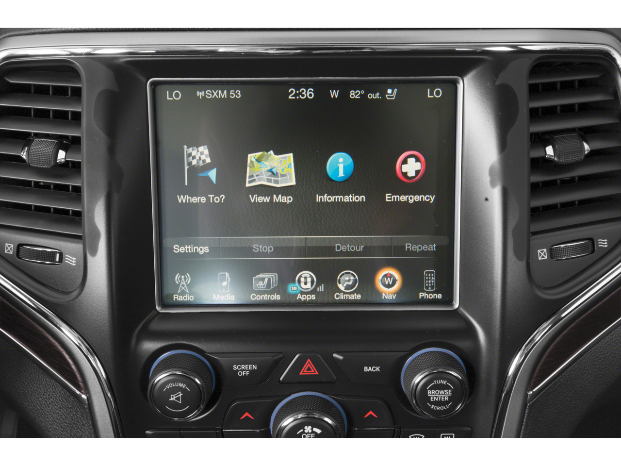 Platinum Series Group (Body Color Door Handles, Body Color Exterior Mirrors, Body Color Sills w/Platinum, Body Color/Platinum Front Fascia, Body Color/Platinum Rear Fascia, Gloss Black Grille-Platinum Chrome, Platinum Day Light Opening Moldings, Platinum Exterior Badging, Platinum Side Roof Rails, Platinum Strip Tail Lamp, and Wheels: 20 x 8.0 Platinum Aluminum), Quick Order Package 22R, 1-Year SiriusXM Guardian Trial, 19 Speakers, 230MM Rear Axle, 4-Wheel Disc Brakes, 4G LTE Wi-Fi Hot Spot, 8.4 Touchscreen Display, ABS brakes, Air Conditioning, Alloy wheels, AM/FM radio: SiriusXM, Anti-whiplash front head restraints, Apple CarPlay, Apple CarPlay/Android Auto, Audio memory, Auto High-beam Headlights, Auto-dimming door mirrors, Auto-dimming Rear-View mirror, Auto-leveling suspension, Automatic temperature control, Brake assist, Bumpers: body-color, Compass, Dark Sienna Brown/Black Interior Color, Delay-off headlights, Driver door bin, Driver vanity mirror, Dual front impact airbags, Dual front side impact airbags, Electronic Stability Control, Emergency communication system: SiriusXM Guardian, Four wheel independent suspension, Front anti-roll bar, Front Bucket Seats, Front Center Armrest w/Storage, Front dual zone A/C, Front fog lights, Front reading lights, Fully automatic headlights, Garage door transmitter, Google Android Auto, GPS Antenna Input, GPS Navigation, harman/kardon® Speakers, HD Radio, Heated door mirrors, Heated front seats, Heated rear seats, Heated steering wheel, High intensity discharge headlights: Bi-Xenon, Illuminated entry, Integrated Voice Command w/Bluetooth®, Knee airbag, Leather Shift Knob, Leather steering wheel, Leather Trimmed Bucket Seats, Low tire pressure warning, Memory seat, Navigation System, Normal Duty Suspension, Occupant sensing airbag, Outside temperature display, Overhead airbag, Overhead console, Panic alarm, ParkView Rear Back-Up Camera, Passenger door bin, Passenger vanity mirror, Power door mirrors, Power driver seat, Power Liftgate, Power moonroof, Power passenger seat, Power steering, Power windows, Radio data system, Radio: Uconnect 4C Nav w/8.4 Display, Rain sensing wipers, Rear anti-roll bar, Rear reading lights, Rear seat center armrest, Rear window defroster, Rear window wiper, Remote keyless entry, Roof rack: rails only, Security system, SiriusXM Satellite Radio, SiriusXM Traffic Plus, SiriusXM Travel Link, Speed control, Speed-sensing steering, Speed-Sensitive Wipers, Split folding rear seat, Spoiler, Steering wheel mounted audio controls, Tachometer, Telescoping steering wheel, Tilt steering wheel, Traction control, Trip computer, Turn signal indicator mirrors, Variably intermittent wipers, Ventilated front seats, Voltmeter, and Wheels: 20 x 8.0 Fully Polished Aluminum.