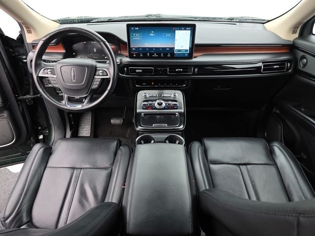 Cargo Utility Package (110V/150W AC Power Outlet, Cargo Compartment w/Reversible Mat, Interior Cargo Cover, Molded Plastic Storage Bins, and Rear Cargo Management System), Equipment Group 201A (Phone As A Key and Wheels: 20 Prem Painted Bright Machined Aluminum), Lincoln Co-Pilot360 Plus Package (360 Degree Camera, Adaptive Cruise Control, Distance Alert & Distance Indication, Enhanced Active Park Assist, Evasive Steering Assist, and Front Sensing), 13 Speakers, 3.80 Axle Ratio, 4-Wheel Disc Brakes, ABS brakes, Air Conditioning, Alloy wheels, AM/FM radio: SiriusXM with 360L, Auto High-beam Headlights, Auto tilt-away steering wheel, Auto-dimming door mirrors, Auto-dimming Rear-View mirror, Automatic temperature control, Brake assist, Bumpers: body-color, Compass, Delay-off headlights, Driver door bin, Driver vanity mirror, Dual front impact airbags, Dual front side impact airbags, Electronic Stability Control, Emergency communication system: 911 Assist, Four wheel independent suspension, Front anti-roll bar, Front Bucket Seats, Front Center Armrest w/Storage, Front dual zone A/C, Front reading lights, Fully automatic headlights, Garage door transmitter: HomeLink, Heated door mirrors, Heated front seats, Heated rear seats, Heated steering wheel, Illuminated entry, Knee airbag, Leather steering wheel, Low tire pressure warning, Memory seat, Navigation System, Occupant sensing airbag, Outside temperature display, Overhead airbag, Overhead console, Panic alarm, Passenger door bin, Passenger vanity mirror, Power door mirrors, Power driver seat, Power Liftgate, Power moonroof: Panoramic Vista Roof, Power passenger seat, Power steering, Power windows, Prem Lthr-Trimmed Heated/Ventilated Captain Seats, Radio data system, Radio: Revel AM/FM/HD Audio System, Rain sensing wipers, Rear anti-roll bar, Rear reading lights, Rear seat center armrest, Rear window defroster, Rear window wiper, Remote keyless entry, Satin Roof Rack Side Rails w/o Crossbars, Security system, Speed control, Speed-sensing steering, Speed-Sensitive Wipers, Split folding rear seat, Spoiler, Steering wheel memory, Steering wheel mounted A/C controls, Steering wheel mounted audio controls, SYNC 4 w/Enhanced Voice Recognition, Tachometer, Telescoping steering wheel, Tilt steering wheel, Traction control, Trip computer, Turn signal indicator mirrors, Ultra Comfort (22-Way) Seats w/Active Motion, Variably intermittent wipers, Ventilated front seats, and Wheels: 18 Premium Painted Bright Machined Alum.