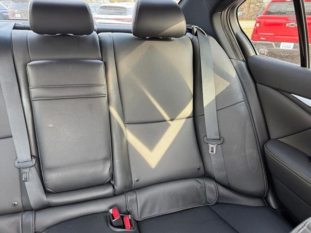 All Weather Package (All-Season Floor Mats and Trunk Protector), 16 Speakers, 4-Wheel Disc Brakes, ABS brakes, Air Conditioning, Alloy wheels, AM/FM radio: SiriusXM, Apple CarPlay/Android Auto, Auto High-beam Headlights, Auto tilt-away steering wheel, Auto-dimming door mirrors, Auto-dimming Rear-View mirror, Automatic temperature control, Blind Spot Warning, Brake assist, Bumpers: body-color, CD player, Compass, Delay-off headlights, Driver door bin, Driver vanity mirror, Dual front impact airbags, Dual front side impact airbags, Electronic Stability Control, Emergency communication system: INFINITI Connection, Four wheel independent suspension, Front anti-roll bar, Front Bucket Seats, Front Center Armrest, Front dual zone A/C, Front fog lights, Front reading lights, Fully automatic headlights, Garage door transmitter: HomeLink, Genuine wood dashboard insert, Genuine wood door panel insert, Heated door mirrors, Heated Front Bucket Seats, Heated front seats, Heated steering wheel, Illuminated entry, INFINITI Radiant Illuminated Kick Plates, INFINITI Radiant Welcome Lighting, Leather Seating Surfaces, Leather Shift Knob, Leather steering wheel, Literature Kit, Low tire pressure warning, Memory seat, Navigation system: INFINITI InTouch Navigation, Occupant sensing airbag, Outside temperature display, Overhead airbag, Overhead console, Panic alarm, Passenger door bin, Passenger vanity mirror, Power door mirrors, Power driver seat, Power moonroof, Power passenger seat, Power steering, Power windows, Radio data system, Radio: INFINITI InTouch w/Navigation, Rain sensing wipers, Rear anti-roll bar, Rear reading lights, Rear seat center armrest, Rear USB Charging Ports, Rear window defroster, Remote keyless entry, Security system, Speed control, Speed-Sensitive Wipers, Splash Guards, Split folding rear seat, Steering wheel memory, Steering wheel mounted audio controls, Tachometer, Telescoping steering wheel, Tilt steering wheel, Traction control, Trip computer, Turn signal indicator mirrors, Variably intermittent wipers, and Wheels: 19 x 8.5 Split 5-Spoke w/Sport Design.