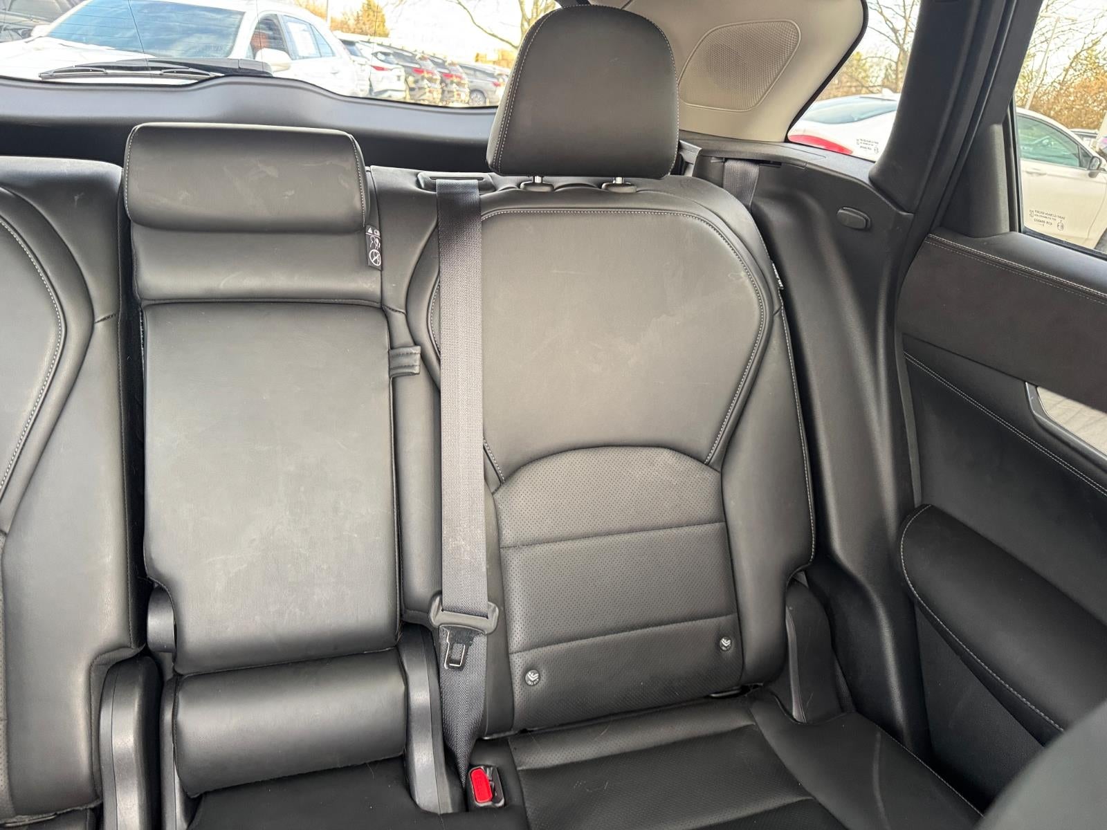 Cargo Package, 16 Speakers, 4-Wheel Disc Brakes, 5.846 Axle Ratio, ABS brakes, Air Conditioning, Alloy wheels, AM/FM radio: SiriusXM, Auto High-beam Headlights, Auto tilt-away steering wheel, Auto-dimming door mirrors, Auto-dimming Rear-View mirror, Automatic temperature control, Brake assist, Bumpers: body-color, CD player, Climate Controlled Front Bucket Seats, Delay-off headlights, Driver door bin, Driver vanity mirror, Dual front impact airbags, Dual front side impact airbags, Electronic Stability Control, Emergency communication system: INFINITI InTouch (1-year complimentary trial), Floor Mats, Four wheel independent suspension, Front anti-roll bar, Front Bucket Seats, Front Center Armrest, Front dual zone A/C, Front fog lights, Front reading lights, Garage door transmitter: HomeLink, Genuine wood door panel insert, Heads-Up Display, Heated door mirrors, Heated front seats, Heated rear seats, Heated steering wheel, Illuminated entry, Illuminated Kick Plates, Knee airbag, Leather Shift Knob, Leather steering wheel, Literature Kit, Low tire pressure warning, Memory seat, Navigation system: INFINITI InTouch Navigation, Occupant sensing airbag, Outside temperature display, Overhead airbag, Overhead console, Panic alarm, Passenger door bin, Passenger vanity mirror, Power door mirrors, Power driver seat, Power Liftgate, Power moonroof, Power passenger seat, Power steering, Power windows, Premium audio system: Bose, Radio data system, Radio: Bose Performance Series Audio System, Rain sensing wipers, Rear anti-roll bar, Rear reading lights, Rear seat center armrest, Rear side impact airbag, Rear window defroster, Rear window wiper, Remote keyless entry, Security system, Semi-Aniline Leather-Appointed Seat Trim, Special Paint - Mineral Black, Speed control, Speed-sensing steering, Speed-Sensitive Wipers, Splash Guards (Set of 4), Split folding rear seat, Spoiler, Steering wheel memory, Steering wheel mounted audio controls, Tachometer, Telescoping steering wheel, Tilt steering wheel, Traction control, Trip computer, Turn signal indicator mirrors, Variably intermittent wipers, Ventilated front seats, Wheels: 20 Dark Painted, and Wheels: 20 Type C Silver Painted Machine Finished.