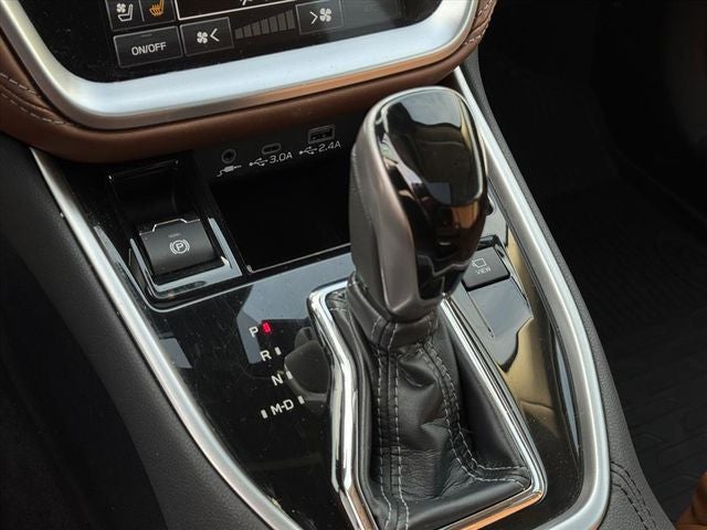 Standard Model, 12 Speakers, 3.90 Axle Ratio, 4-Wheel Disc Brakes, ABS brakes, Air Conditioning, All-Weather Floor Liners, Alloy wheels, AM/FM radio: SiriusXM, Auto High-beam Headlights, Auto-Dimming Exterior Mirror w/Approach Light, Auto-dimming Rear-View mirror, Automatic temperature control, Brake assist, Bumpers: body-color, Compass, Crystal Black Silica Body Side Molding, Crystal Black Silica Door Edge Guards, Door Scuff Protector, Driver door bin, Driver vanity mirror, Dual front impact airbags, Dual front side impact airbags, Electronic Stability Control, Emergency communication system: STARLINK Safety Plus (3-year free trial), Exterior Parking Camera Rear, Four wheel independent suspension, Front anti-roll bar, Front Bucket Seats, Front Center Armrest w/Storage, Front dual zone A/C, Front fog lights, Front reading lights, Fully automatic headlights, Garage door transmitter: HomeLink, harman/kardon® Speakers, Heated & Ventilated Front Bucket Seats, Heated door mirrors, Heated front seats, Heated rear seats, Heated steering wheel, HVAC memory, Illuminated entry, Knee airbag, Leather Shift Knob, Leather steering wheel, Low tire pressure warning, Memory seat, Navigation System, Occupant sensing airbag, Outside temperature display, Overhead airbag, Overhead console, Panic alarm, Passenger door bin, Passenger vanity mirror, Perforated Nappa Leather-Trimmed Upholstery, Power door mirrors, Power driver seat, Power Liftgate, Power moonroof, Power passenger seat, Power steering, Power windows, Radio: Subaru STARLINK 11.6 Multimedia Nav System, Rear anti-roll bar, Rear Bumper Cover, Rear seat center armrest, Rear window defroster, Rear window wiper, Remote CD player, Remote keyless entry, Roof rack, Security system, Speed control, Speed-sensing steering, Splash Guards, Split folding rear seat, Spoiler, Steering wheel mounted audio controls, Steering Wheel Paddle Shift Control Switches, Tachometer, Telescoping steering wheel, Tilt steering wheel, Traction control, Trip computer, Turn signal indicator mirrors, Variably intermittent wipers, Ventilated front seats, and Wheels: 18 x 7J Black Aluminum Alloy.