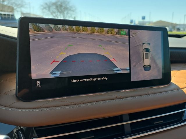 Cargo Package (Cargo Mat (Reversible) and First Aid Kit), 17 Speakers, 3rd row seats: bench, 4-Wheel Disc Brakes, 4.33 Axle Ratio, ABS brakes, Air Conditioning, Alloy wheels, AM/FM radio: SiriusXM, Anti-whiplash front head restraints, Apple CarPlay/Android Auto, Auto High-beam Headlights, Auto tilt-away steering wheel, Auto-dimming door mirrors, Auto-dimming Rear-View mirror, Automatic temperature control, Black-Color Roof Rail Cross Bars, Bose Performance Series 17-Speaker Sound System, Brake assist, Bumpers: body-color, Climate Controlled Front Bucket Seats, Delay-off headlights, Driver door bin, Driver vanity mirror, Dual front impact airbags, Dual front side impact airbags, Electronic Stability Control, Emergency communication system: INFINITI InTouch, Exterior Parking Camera Rear, Four wheel independent suspension, Front anti-roll bar, Front Bucket Seats, Front Center Armrest, Front dual zone A/C, Front reading lights, Fully automatic headlights, Garage door transmitter: HomeLink, Heads-Up Display, Heated door mirrors, Heated front seats, Heated rear seats, Heated steering wheel, Illuminated entry, Knee airbag, Leather Shift Knob, Leather steering wheel, Low tire pressure warning, Memory seat, Navigation system: INFINITI InTouch Navigation, Occupant sensing airbag, Outside temperature display, Overhead airbag, Overhead console, Panic alarm, Passenger door bin, Passenger vanity mirror, Power door mirrors, Power driver seat, Power Liftgate, Power moonroof, Power passenger seat, Power steering, Power windows, Radio data system, Radio: AM/FM Audio System, Rain sensing wipers, Rear air conditioning, Rear anti-roll bar, Rear reading lights, Rear side impact airbag, Rear window defroster, Rear window wiper, Reclining 3rd row seat, Remote keyless entry, Security system, Semi Aniline Leather-Appointed Seating Surfaces, Speed control, Speed-sensing steering, Speed-Sensitive Wipers, Splash Guards (Set of 4), Split folding rear seat, Spoiler, Steering wheel memory, Steering wheel mounted audio controls, Tachometer, Telescoping steering wheel, Tilt steering wheel, Traction control, Trip computer, Turn signal indicator mirrors, Variably intermittent wipers, Ventilated front seats, and Wheels: 20 x 8J Luxury Machined Aluminum Alloy.