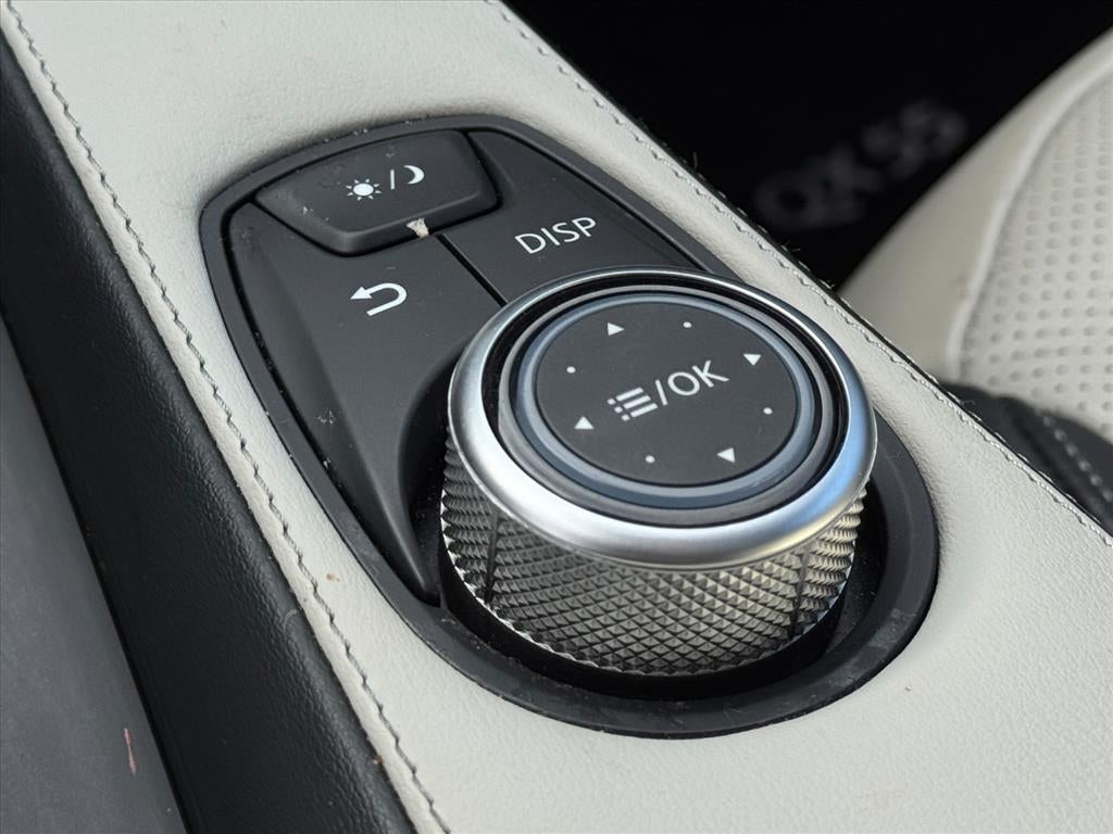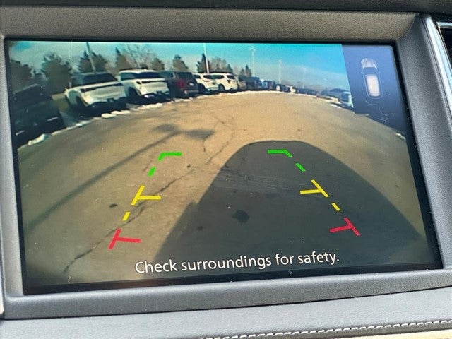Cargo Package (Black Film Rear Bumper Protector, Cargo Net, and Reversible Cargo Mat), 4-Wheel Disc Brakes, 6 Speakers, ABS brakes, Air Conditioning, Alloy wheels, AM/FM radio: SiriusXM, Auto High-beam Headlights, Auto-dimming Rear-View mirror, Automatic temperature control, Black Splash Guards (Set of 4), Brake assist, Bumpers: body-color, Carpeted Floor Mats, CD player, Delay-off headlights, Driver door bin, Driver vanity mirror, Dual front impact airbags, Dual front side impact airbags, Electronic Stability Control, Emergency communication system: INFINITI InTouch, Exclusive Paint, Exterior Parking Camera Rear, Four wheel independent suspension, Front anti-roll bar, Front Bucket Seats, Front Center Armrest, Front dual zone A/C, Front fog lights, Front reading lights, Fully automatic headlights, Garage door transmitter, Heated door mirrors, Heated Front Bucket Seats, Heated front seats, Illuminated entry, Knee airbag, Leather Shift Knob, Leather steering wheel, Leather-Appointed Seat Trim, Literature Kit, Low tire pressure warning, Memory seat, Occupant sensing airbag, Outside temperature display, Overhead airbag, Overhead console, Panic alarm, Passenger door bin, Passenger vanity mirror, Power door mirrors, Power driver seat, Power Liftgate, Power moonroof, Power passenger seat, Power steering, Power windows, Radio data system, Radio: AM/FM Audio System, Rear anti-roll bar, Rear Parking Sensors, Rear reading lights, Rear seat center armrest, Rear side impact airbag, Rear window defroster, Rear window wiper, Remote keyless entry, Security system, Speed control, Speed-sensing steering, Speed-Sensitive Wipers, Split folding rear seat, Spoiler, Steering wheel mounted audio controls, Tachometer, Telescoping steering wheel, Tilt steering wheel, Traction control, Trip computer, Turn signal indicator mirrors, Variably intermittent wipers, and Wheels: 8.5J x 20 Machine Finished Aluminum Alloy.