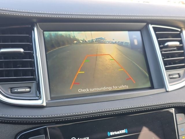 Cargo Package (Black Film Rear Bumper Protector, Cargo Net, and Reversible Cargo Mat), 4-Wheel Disc Brakes, 6 Speakers, ABS brakes, Air Conditioning, Alloy wheels, AM/FM radio: SiriusXM, Auto High-beam Headlights, Auto-dimming Rear-View mirror, Automatic temperature control, Black Splash Guards (Set of 4), Brake assist, Bumpers: body-color, Carpeted Floor Mats, CD player, Delay-off headlights, Driver door bin, Driver vanity mirror, Dual front impact airbags, Dual front side impact airbags, Electronic Stability Control, Emergency communication system: INFINITI InTouch, Exterior Parking Camera Rear, Four wheel independent suspension, Front anti-roll bar, Front Bucket Seats, Front Center Armrest, Front dual zone A/C, Front fog lights, Front reading lights, Fully automatic headlights, Garage door transmitter, Heated door mirrors, Heated Front Bucket Seats, Heated front seats, Illuminated entry, Knee airbag, Leather Shift Knob, Leather steering wheel, Leather-Appointed Seat Trim, Literature Kit, Low tire pressure warning, Memory seat, Occupant sensing airbag, Outside temperature display, Overhead airbag, Overhead console, Panic alarm, Passenger door bin, Passenger vanity mirror, Power door mirrors, Power driver seat, Power Liftgate, Power moonroof, Power passenger seat, Power steering, Power windows, Premium Paint, Radio data system, Radio: AM/FM Audio System, Rear anti-roll bar, Rear Parking Sensors, Rear reading lights, Rear seat center armrest, Rear side impact airbag, Rear window defroster, Rear window wiper, Remote keyless entry, Security system, Speed control, Speed-sensing steering, Speed-Sensitive Wipers, Split folding rear seat, Spoiler, Steering wheel mounted audio controls, Tachometer, Telescoping steering wheel, Tilt steering wheel, Traction control, Trip computer, Turn signal indicator mirrors, Variably intermittent wipers, and Wheels: 8.5J x 20 Machine Finished Aluminum Alloy.