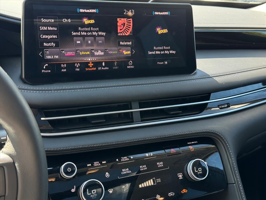 3rd row seats: bench, 4-Wheel Disc Brakes, 9 Speakers, ABS brakes, Air Conditioning, Alloy wheels, AM/FM radio: SiriusXM, Auto High-beam Headlights, Auto-dimming Rear-View mirror, Automatic temperature control, Blind Spot Warning, Brake assist, Delay-off headlights, Driver door bin, Driver vanity mirror, Dual front impact airbags, Dual front side impact airbags, Electronic Stability Control, Four wheel independent suspension, Front anti-roll bar, Front Bucket Seats, Front dual zone A/C, Front reading lights, Fully automatic headlights, Heated door mirrors, Heated front seats, Heated steering wheel, Illuminated entry, Knee airbag, Leather Shift Knob, Leather steering wheel, Leather-Appointed Seating Surfaces, Low tire pressure warning, Memory seat, Occupant sensing airbag, Outside temperature display, Overhead airbag, Overhead console, Panic alarm, Passenger door bin, Passenger vanity mirror, Power door mirrors, Power driver seat, Power Liftgate, Power moonroof, Power passenger seat, Power steering, Power windows, Radio data system, Rain sensing wipers, Rear air conditioning, Rear anti-roll bar, Rear Parking Sensors, Rear reading lights, Rear side impact airbag, Rear window defroster, Rear window wiper, Reclining 3rd row seat, Remote keyless entry, Security system, Speed control, Speed-sensing steering, Speed-Sensitive Wipers, Split folding rear seat, Spoiler, Steering wheel mounted audio controls, Tachometer, Telescoping steering wheel, Tilt steering wheel, Traction control, Trip computer, Turn signal indicator mirrors, and Variably intermittent wipers.