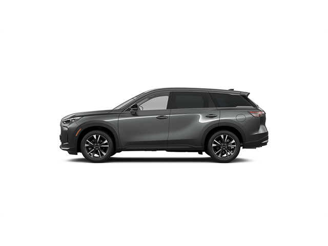 Cargo Package (Cargo Blocks, Cargo Mat, Cargo Net, Clear Rear Bumper Film, and Medic Kit), 3rd row seats: bench, 4-Wheel Disc Brakes, 9 Speakers, ABS brakes, Air Conditioning, Alloy wheels, AM/FM radio: SiriusXM with 360L, Anti-whiplash front head restraints, Apple CarPlay/Android Auto, Auto High-beam Headlights, Auto-dimming Rear-View mirror, Automatic temperature control, Blind Spot Warning, Brake assist, Bumpers: body-color, Carpeted Floor Mats with Bench Seats on 3rd Row Tray, Delay-off headlights, Driver door bin, Driver vanity mirror, Dual front impact airbags, Dual front side impact airbags, Electronic Stability Control, Emergency communication system: INFINITI InTouch, Four wheel independent suspension, Front anti-roll bar, Front Bucket Seats, Front Center Armrest, Front dual zone A/C, Front reading lights, Fully automatic headlights, Heated door mirrors, Heated Front Bucket Seats, Heated front seats, Heated steering wheel, Illuminated entry, Knee airbag, Leather Shift Knob, Leather steering wheel, Literature Kit, Low tire pressure warning, Memory seat, Navigation system: Google Built-in, Occupant sensing airbag, Outside temperature display, Overhead airbag, Overhead console, Panic alarm, Passenger door bin, Passenger vanity mirror, Power door mirrors, Power driver seat, Power Liftgate, Power moonroof: Panoramic, Power passenger seat, Power steering, Power windows, Radio data system, Radio: AM/FM Audio System, Rain sensing wipers, Rear air conditioning, Rear anti-roll bar, Rear Parking Sensors, Rear reading lights, Rear seat center armrest, Rear side impact airbag, Rear window defroster, Rear window wiper, Reclining 3rd row seat, Remote keyless entry, Security system, Speed control, Speed-sensing steering, Speed-Sensitive Wipers, Split folding rear seat, Spoiler, Steering wheel mounted audio controls, Tachometer, Tailorfit-Appointed Seating Surfaces, Telescoping steering wheel, Tilt steering wheel, Traction control, Trip computer, Turn signal indicator mirrors, Variably intermittent wipers, and Wheels: 20 x 8J Sporty Machined Aluminum Alloy.